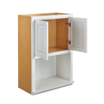 Wall microwave cabinet 27" wide by 14"deep with 17" Deep bottom shelf. Vintage White Raised Panel microwave wall kitchen cabinet RTA (Ready to Assemble).