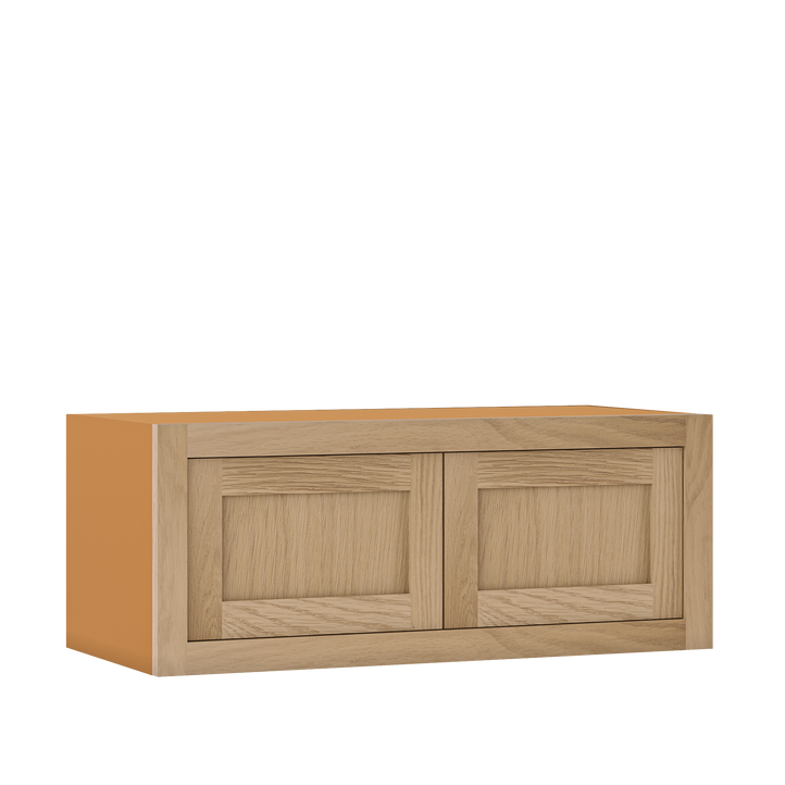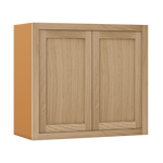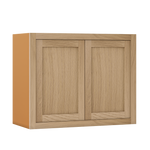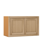 33" Wide Custom Oak Stacker Inset Shaker Wall Cabinet - Double Door 12", 15", 18", 21"& 24" Tall