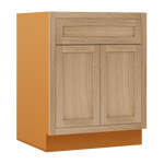White Oak Inset Shaker Base Cabinet - Double Door 24"-27" Wide
