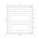 White Oak Shaker Inset Three Drawer Base Cabinet - 12", 15", 18", 21", 24",27", 30", 33" & 36" - Special Order