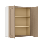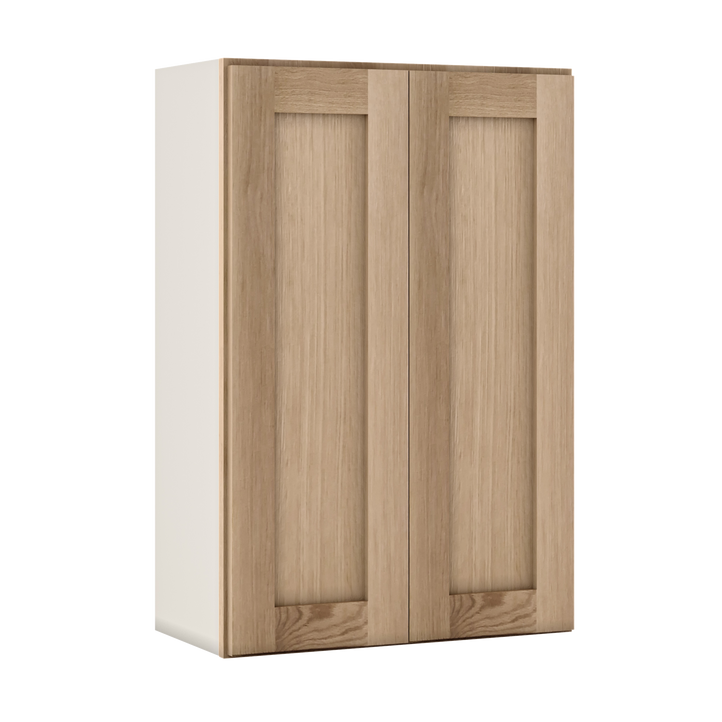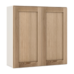36" Tall Natural Color 17ROS - Redondo White Oak Shaker 1-1/4" Overlay Wall Cabinet - Double Door 24", 27", 30", 33" & 36" Wide