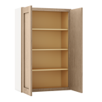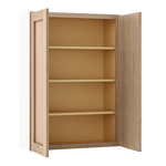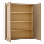 42" Tall Natural Color 17ROS - Redondo White Oak Shaker 1-1/4" Overlay Wall Cabinet - Double Door 24", 27", 30", 33", 36"