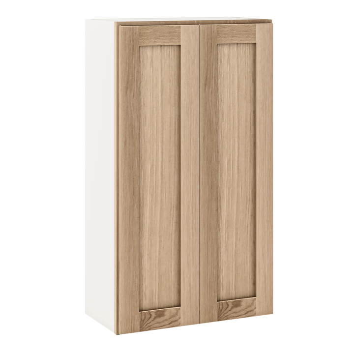 42" Tall Natural Color 17ROS - Redondo White Oak Shaker 1-1/4" Overlay Wall Cabinet - Double Door 24", 27", 30", 33", 36"