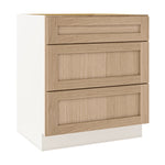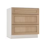Natural Color 17ROS - Redondo White Oak Shaker 1-1/4" Overlay 3 Drawer Base Cabinet 12", 15", 18", 21", 24", 30", 33" & 36" Wide