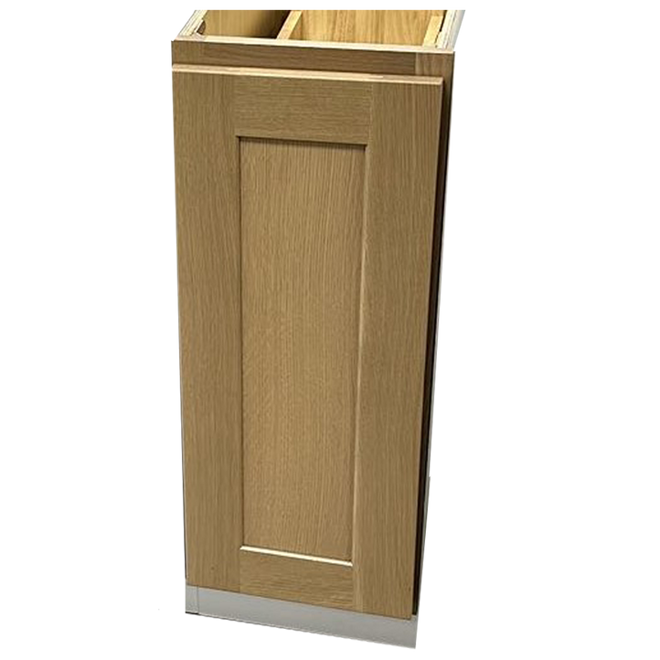 Base Spice Rack Pull Out cabinet is available 9" & 12" wide by 24" deep by 34-1/2" tall. 1-1/4" Overlay Natural Oak Shaker Spice Rack Pull Out base kitchen cabinet RTA (Ready to Assemble).