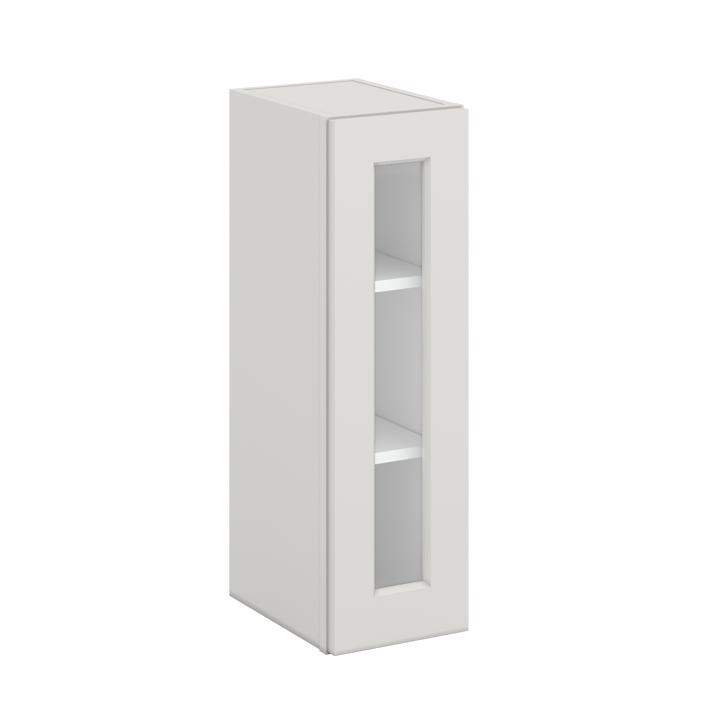 30" Tall 2WS White Shaker 1-1/4" Overlay Wall Glass Cabinet - Single Door 9", 12", 15", 18", 21" WIde