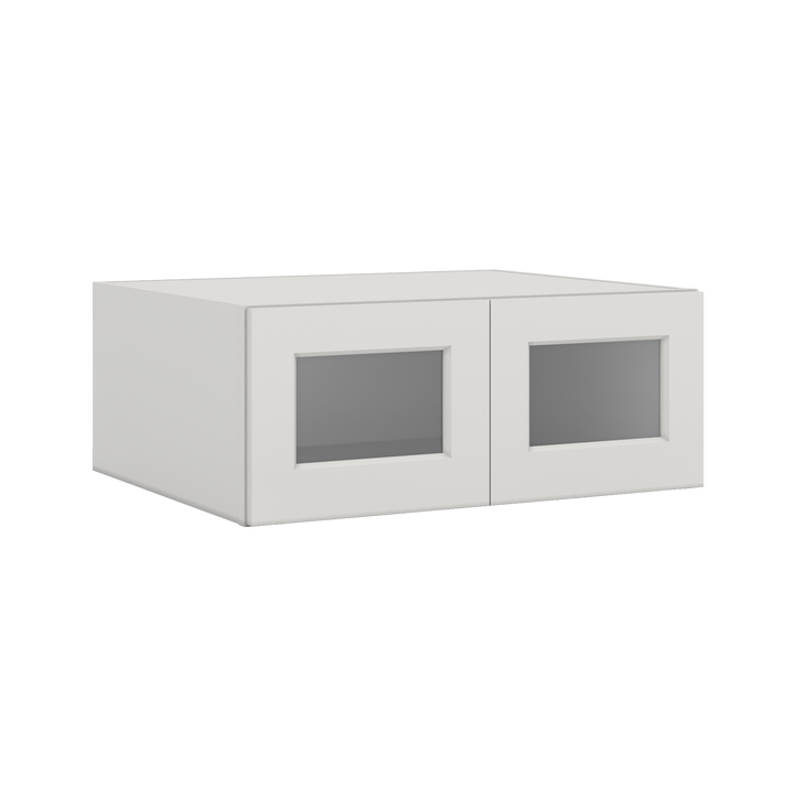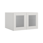 30" Wide 24" Deep Bridge 2WS White Shaker 1-1/4" Overlay Wall Glass Cabinet - Double Door 12", 15", 18", 21" & 24" Tall