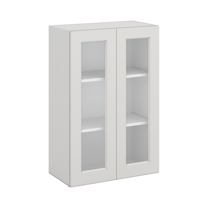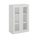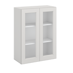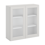 36" Tall 2WS White Shaker 1-1/4" Overlay Wall Glass Cabinet - Double Door 24", 27", 30", 33" & 36" Wide
