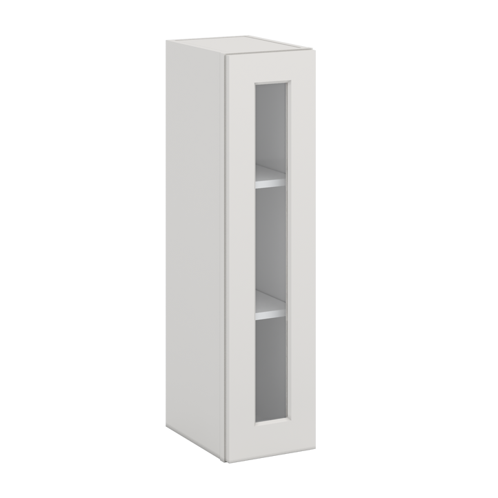 36" Tall 2WS White Shaker 1-1/4" Overlay Wall Glass Cabinet - Single Door 9", 12", 15", 18", 21"