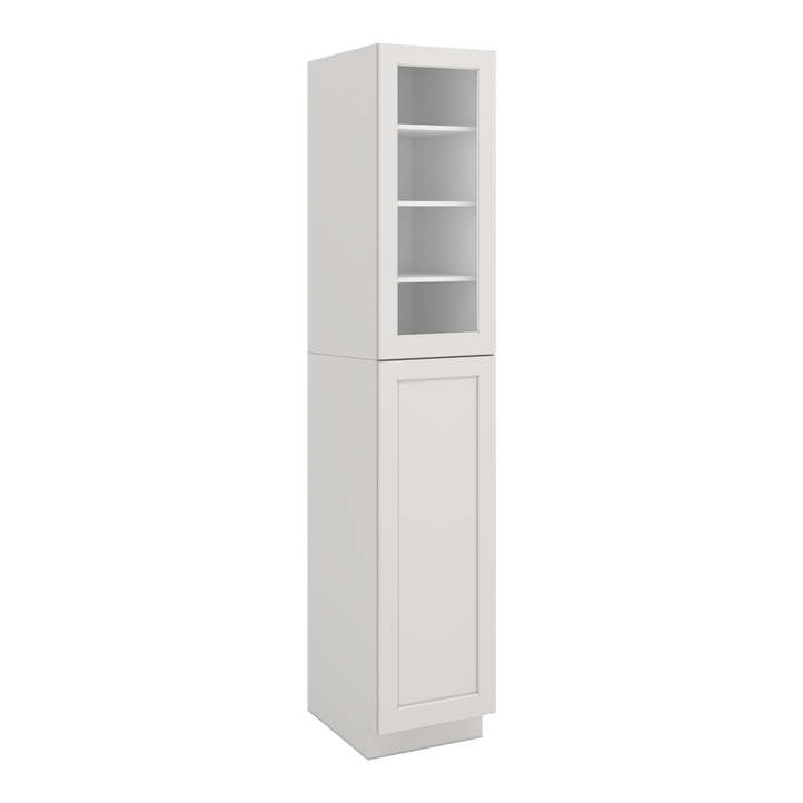 96" Tall Pantry 2WS White Shaker 1-1/4" Overlay Glass Cabinet 18", 24" & 30" Wide