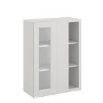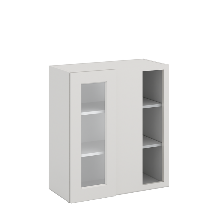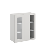 Blind Corner 2WS White Shaker 1-1/4" Overlay Wall Glass Cabinet (left or right) 27" Wide by 30", 36" or 42" Tall