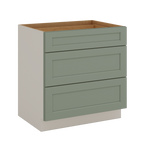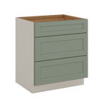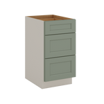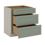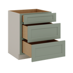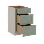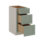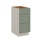 12", 15", 18", 21", 24", 30", 33" & 36" Wide 14SG Sage Green Shaker 1-1/4" Overlay 3 Drawer Base Cabinet