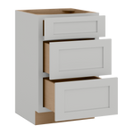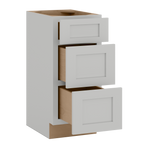 12", 15", 18", and 21" Width | Vanity 3 Drawer Base Cabinet | RTA Unassembled | Premium White Shaker Full Overlay