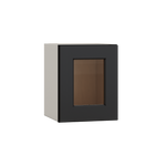 15" Tall 15HNS Hermosa Noir Black Shaker Stackable Glass Wall Cabinet - Single Door 9", 12", 15", 18" & 21" Wide