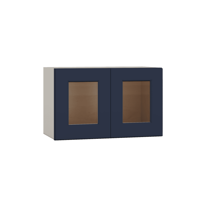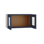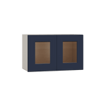 15" Tall 29NB Naval Blue Shaker Stackable Glass Wall Cabinet - Double Door 24", 27", 30", 33" & 36" Wide