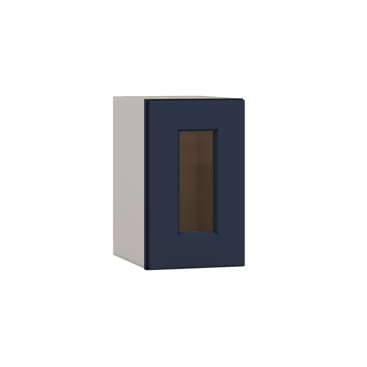 15" Tall 29NB Naval Blue Shaker Stackable Glass Wall Cabinet - Single Door 9", 12", 15", 18" & 21" Wide