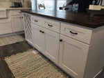 Base Lazy Susan Cabinet is available 36" wide (Each direction) by 24" deep by 34-1/2" tall. 1-1/4" Overlay 29 Newport White Double Shaker Lazy Susan base kitchen cabinet RTA (Ready...