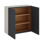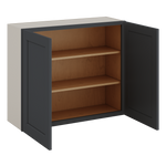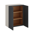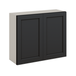 30" Tall 15HNS Hermosa Noir Black Shaker 1-1/4" Overlay Wall Cabinet - Double Door 24", 27", 30", 33" & 36" Wide
