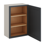 30" Tall 15HNS Hermosa Noir Black Shaker 1-1/4" Overlay Wall Cabinet - Single Door 9", 12", 15", 18", 21" WIde