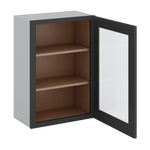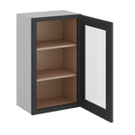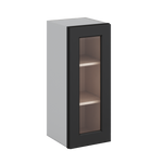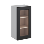 30" Tall 15HNS Hermosa Noir Black Shaker 1-1/4" Overlay Wall Glass Cabinet - Single Door 9", 12", 15", 18", 21" WIde