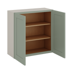 30" Tall 24", 27", 30", 33" & 36" Wide 14SG Sage Green Shaker 1-1/4" Overlay Wall Cabinet - Double Door