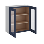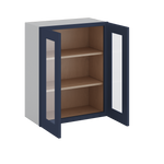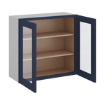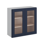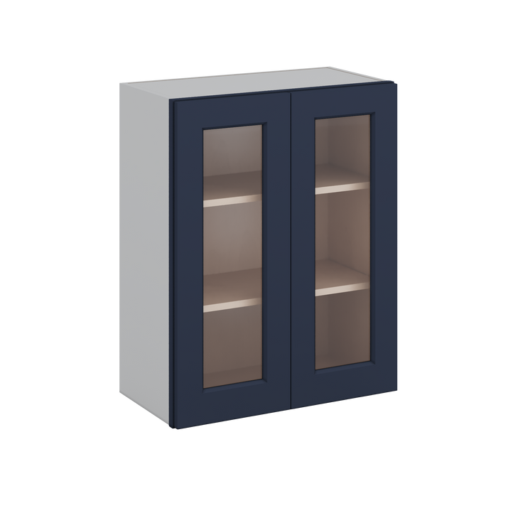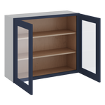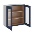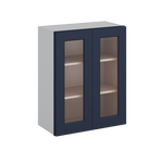 30" Tall 29NB Naval Blue Shaker 1-1/4" Overlay Wall Glass Cabinet - Double Door 24", 27", 30", 33" & 36" Wide