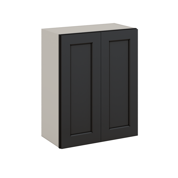 This 30 inch tall wall cabinet features two soft-close doors and comes in a modern 15HNS Hermosa Noir Black Shaker overlay design. It's ideal for kitchen upgrades and new builds, offering style and practical storage space.