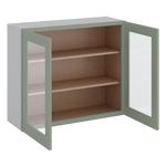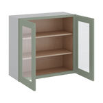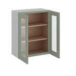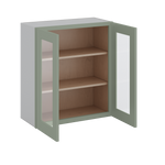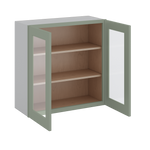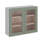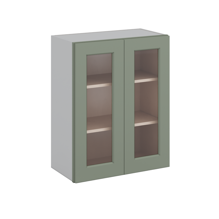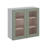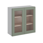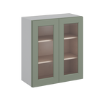 30" Tall Green Shaker 1-1/4" Overlay Wall Glass Cabinet - Double Door 24", 27", 30", 33" & 36" Wide