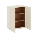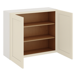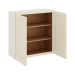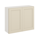 30" Tall Manhattan Cream Shaker 1-1/4" Overlay Wall Cabinet - Double Door 24", 27", 30", 33" & 36" Wide