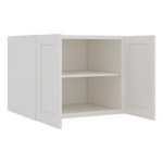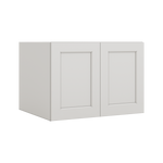 30" Wide 24" Deep Bridge 2WS White Shaker 1-1/4" Overlay Wall Cabinet - Double Door 12", 15", 18", 21" & 24" Tall
