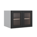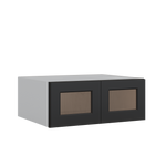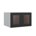30" Wide 24" Deep Bridge 15HNS Hermosa Noir Black Shaker 1-1/4" Overlay Wall Glass Cabinet - Double Door 12", 15", 18", 21" & 24" Tall