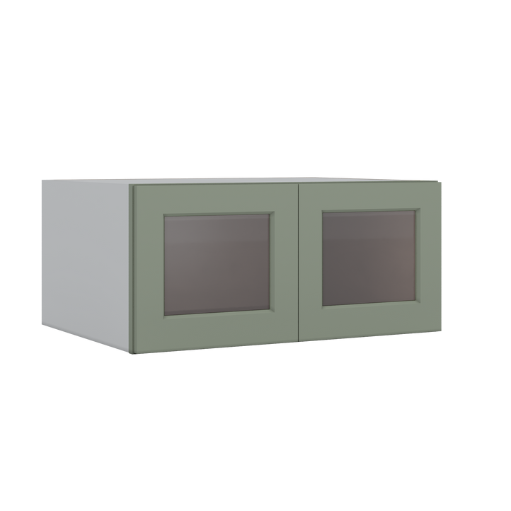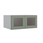 33" Wide Bridge Green Shaker 1-1/4" Overlay Glass Ready Wall Cabinet - Double Door 15" Tall - 24" Deep