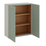 36" Tall 24", 27", 30", 33", 36" & 42" Wide 14SG Sage Green Shaker 1-1/4" Overlay Wall Cabinet - Double Door