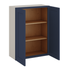 36" Tall 29NB Naval Blue Shaker 1-1/4" Overlay Wall Cabinet - Double Door 24", 27", 30", 33" & 36" Wide