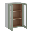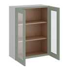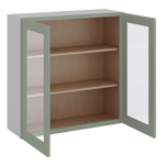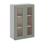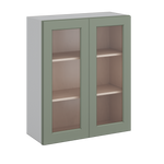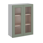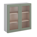 36" Tall Green Shaker 1-1/4" Overlay Wall Glass Cabinet - Double Door 24", 27", 30", 33" & 36" Wide