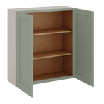 36" Tall Green Shaker 1-1/4" Overlay Wall Cabinet - Double Door 24", 27", 30", 33" & 36" Wide