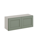 36" Wide 12", 15", 18", 21", 24" Tall by 12" Deep Bridge 14SG Sage Green Shaker 1-1/4"Overlay Wall Cabinet - Double Door