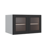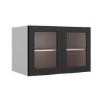 36" Wide 24" Deep Upper 15HNS Hermosa Noir Black Shaker 1-1/4" Overlay Glass Ready Wall Cabinet - Double Door 12", 15", 18", 21", 24"