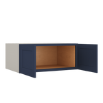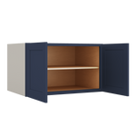 36" Wide by 24" Deep Wall cabinets, select the desired height. 29NB Naval Blue Shaker wall kitchen cabinet RTA (Ready to Assemble). These cabinets are widely used over refrigerators. These cabinets can be "boxed...