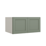 36" Wide 24" Deep Upper Green Shaker 1-1/4" Overlay Wall Cabinet - Double Door 12", 15", 18", 21", 24"