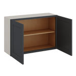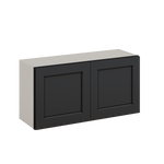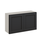 36" Wide by 12" Deep Bridge 15HNS Hermosa Noir Black Shaker 1-1/4"Overlay Wall Cabinet - Double Door 12", 15", 18", 21", 24" Tall
