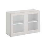 36" Wide by 12" Deep Bridge 2WS White Shaker 1-1/4"Overlay Wall Glass Cabinet - Double Door 12", 15", 18", 21", 24" Tall