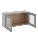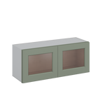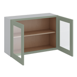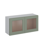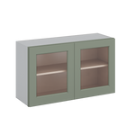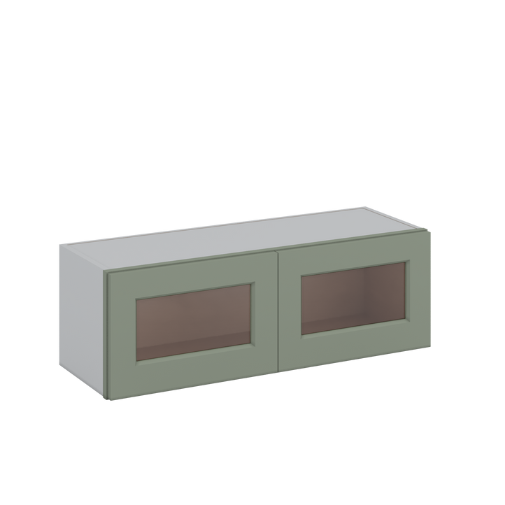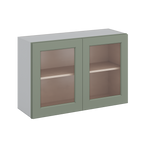 36" Wide by 12" Deep Bridge Green Shaker 1-1/4"Overlay Wall Glass Cabinet - Double Door 12", 15", 18", 21", 24" Tall