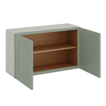 36" Wide by 12" Deep Bridge Green Shaker 1-1/4"Overlay Wall Cabinet - Double Door 12", 15", 18", 21", 24" Tall