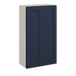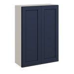 42" Tall 29NB Naval Blue Shaker 1-1/4" Overlay Wall Cabinet - Double Door 24", 27", 30", 33", 36"