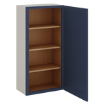 42" Tall 29NB Naval Blue Shaker 1-1/4" Overlay Wall Cabinet - Single Door 9", 12", 15", 18", 21"