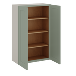 42" Tall Green Shaker 1-1/4" Overlay Wall Cabinet - Double Door 24", 27", 30", 33", 36"