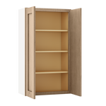 42" Tall Natural Color 17ROS - Redondo White Oak Shaker 1-1/4" Overlay Wall Cabinet - Double Door 24", 27", 30", 33", 36"