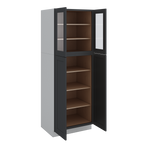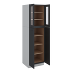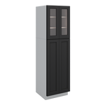 Glass Not Included Wall pantry cabinet 84" tall by 24"deep. 15HNS Hermosa Noir Black Shaker 1-1/4" Overlay Pantry wall kitchen cabinet RTA (Ready to Assemble). 18" wide cabinet has two single...