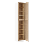 Wall pantry cabinet 84" tall by 24"deep. Natural 17ROS - Redondo White Oak Shaker 1-1/4" Overlay Pantry wall kitchen cabinet RTA (Ready to Assemble). 18" wide cabinet has two single doors which can be installed with...